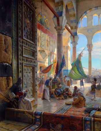 Forecourt Of The Great Umayyad Mosque in Damascus, Syria by Gustav Bauernfeind – Hand-Painted Islamic Oil Painting